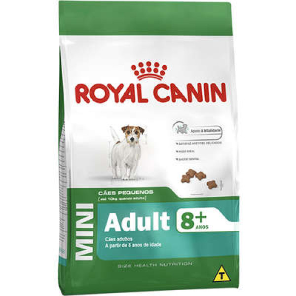 Ração Mini Adult 8+ Royal Canin é um alimento completo seco para cães maduros de porte pequeno– A partir de 8 anos de idade.