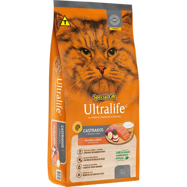 Ração Special Cat Ultralife Castrados Salmão e Arroz 10,1 Kg