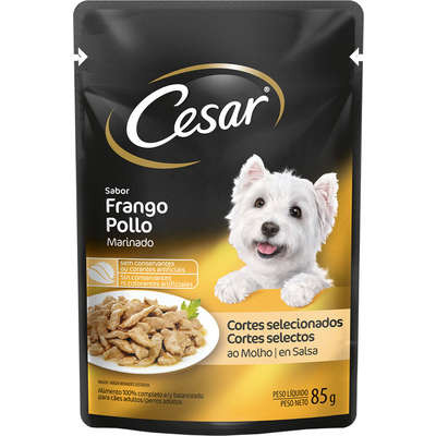 Miúdos de aves, miúdos de bovinos, miúdos de suínos, carne mecanicamente separada de frango, plasma sanguíneo suíno em pó, gelatina, farinha de trigo, dextrose, proteína isolada de soja, proteína texturizada de soja, gordura de frango, óleo de peixe (0,35%), extrato de Yucca schidigera, hidrolisado de fígado de frango e suíno, cloreto de sódio (sal comum), cloreto de potássio, água, glicina, cisteína, vitaminas (A, B1, B2, B3, B5, B6, B7, B9, B12, C, D3, E, cloreto de colina), minerais quelatados (glicinatos: cobre, ferro, manganês e zinco), levedura enriquecida com selênio, iodato de cálcio, sulfato de cobre, sulfato de manganês, sulfato de zinco, goma guar, goma xantana, carragena, tripolifosfato de sódio, EDTA cálcio dissódico, nitrato e nitrito de sódio, BHA, BHT, corante natural caramelo.