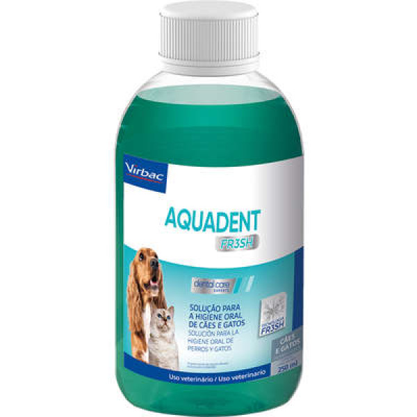 A Solução Oral Aquadent Fresh Vibarc é uma solução oral para realizar a manutenção da saúde bucal de cães e gatos. Palatável e refrescante, é um produto produzido com ingredientes naturais e afasta o mau hálito.
