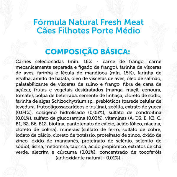 Ração Fórmula Natural Fresh Meat Para Cães Filhotes de Porte Médio 12 KG