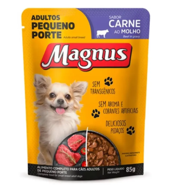 Ração Úmida Sachê Magnus Para Cães Adultos De Porte Pequeno Sabor Carne 85 G