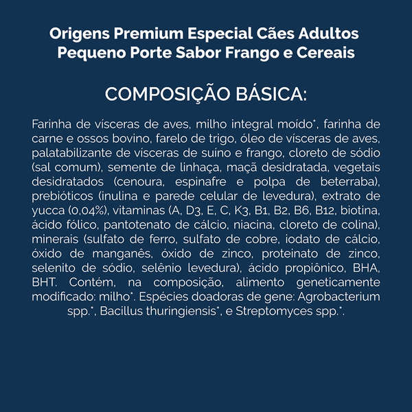 Ração Origens Para Cães Adultos De Porte Pequeno Sabor Frango Com Cereais 1 KG