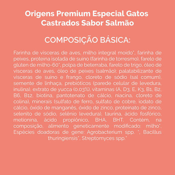 Ração Origens Para Gatos Adultos Castrados Sabor Salmão 3 KG