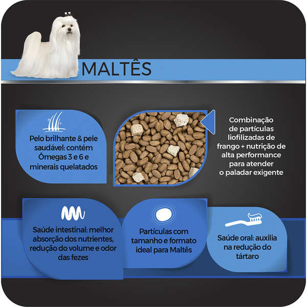 - Partículas com tamanho ideal para Maltês;