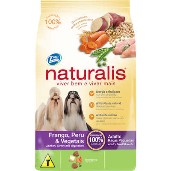 A Ração Total Naturalis Frango,Peru e Vegetais para Cães Adultos de Raças Pequenas Viver bem e melhor: esses são os objetivos de todos nós e também o que mais queremos para nossos amigos. Naturalis é um produto 100% natural: sem corantes ou conservantes artificiais.