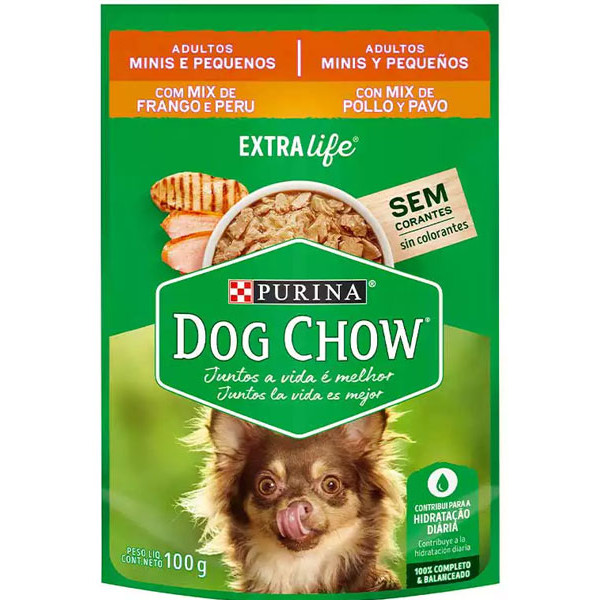 Ração Úmida Sachê Dog Chow Purina Para Cães Ad. R. Peq Sabor Mix de Frango e Peru 100 G