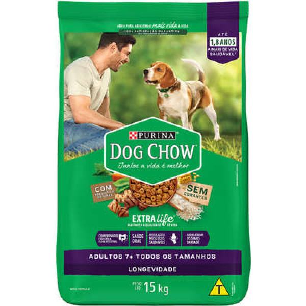 A Ração Seca Nestlé Purina Dog Chow Extra Life Carne, Frango e Arroz Cães Adulto 7+ Todas as Raças é um alimento balanceado e 100% completo, ideal para cães idosos. Sem corantes artificiais, possui glucosamina que contribui para mobilidade e articulações saudáveis. Com prebiótico e proteínas de fácil digestão que permitem melhor absorção dos nutrientes, além de ajudar na redução do tártaro, proporcionando dentes mais saudáveis.