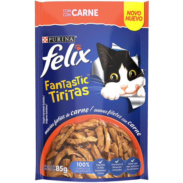 Ração Úmida Felix Fantastic Tiritas Purina Para Gatos Sabor Carne 85 G