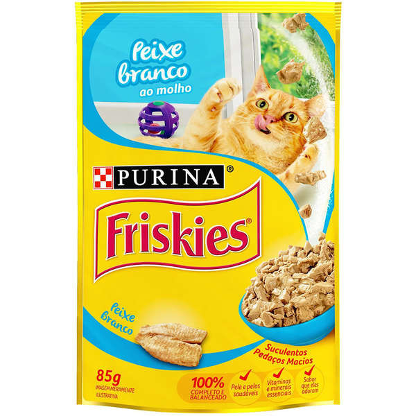 Ração Úmida Friskies Purina Para Gatos Sabor Peixe Branco Ao Molho 85 G