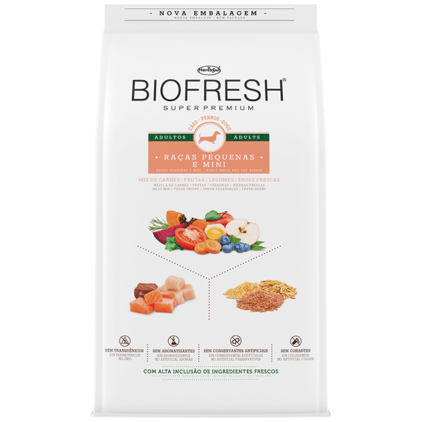 Biofresh Super Premium é inovador e diferente porque possui alta inclusão de ingredientes realmente frescos, diretamente da natureza. O resultado é um alimento completo e equilibrado que se destaca por elevar a nutrição dos cães de raças pequenas e mini ao seu mais alto patamar. A tecnologia Biofresh garante a preservação deste alimento de forma segura e 100% natural, sem adição de conservantes artificiais.