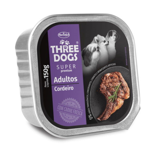 Ração Úmida Three Dogs Pate Para Cães Adultos Sabor Cordeiro 150 G