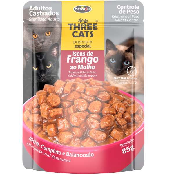 Ração Úmida Three Cats Sachê Para Gatos Adultos Castrados 85 G