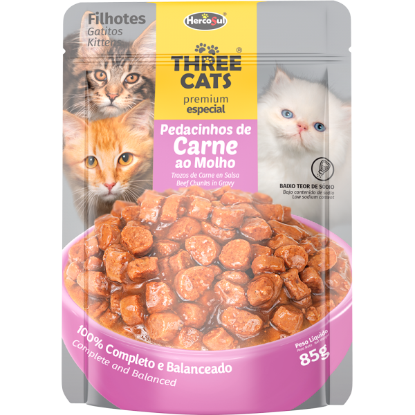 Ração Úmida Three Cats Sachê Para Gatos Filhotes 85 G