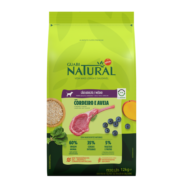 Ração Guabi Natural Para Cães Adultos de Porte Médio Sabor Cordeiro 12 KG
