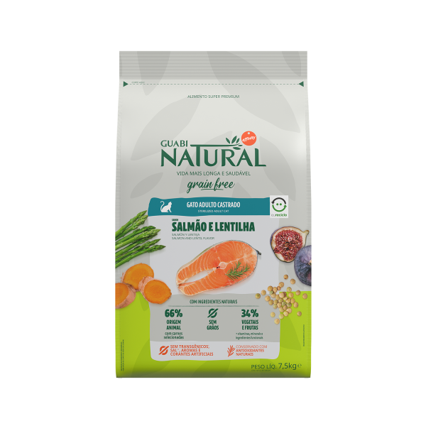 Ração Guabi Natural Grain Free Para Gatos Adultos Castrado Sabor Salmão 7,5 KG