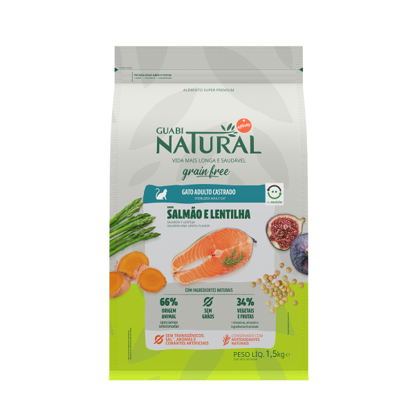 Ração Guabi Natural Grain Free Para Gatos Adultos Castrado Sabor Salmão 1,5 KG