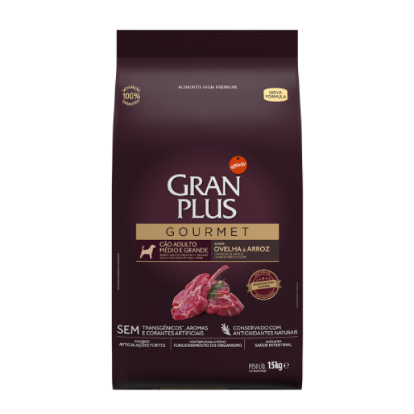 Ração Gran Plus Gourmet Para Cães Adultos de Porte Médio e Grande Sabor Ovelha 15 KG