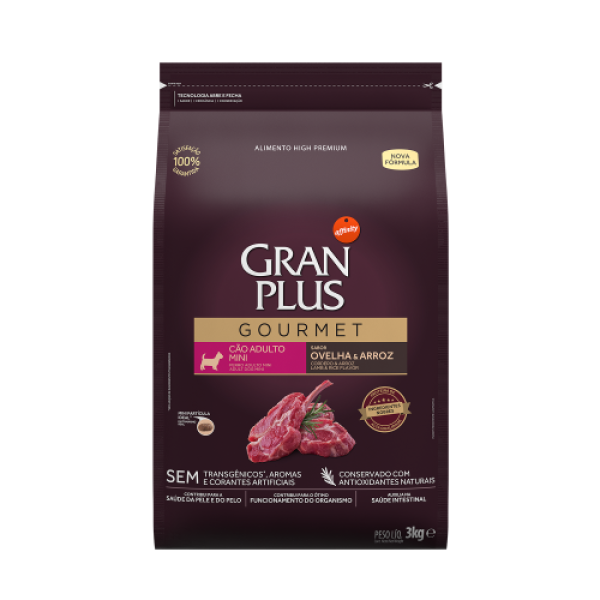 Ração Gran Plus Gourmet Para Cães Adultos de Porte Pequeno Sabor Ovelha 3 KG
