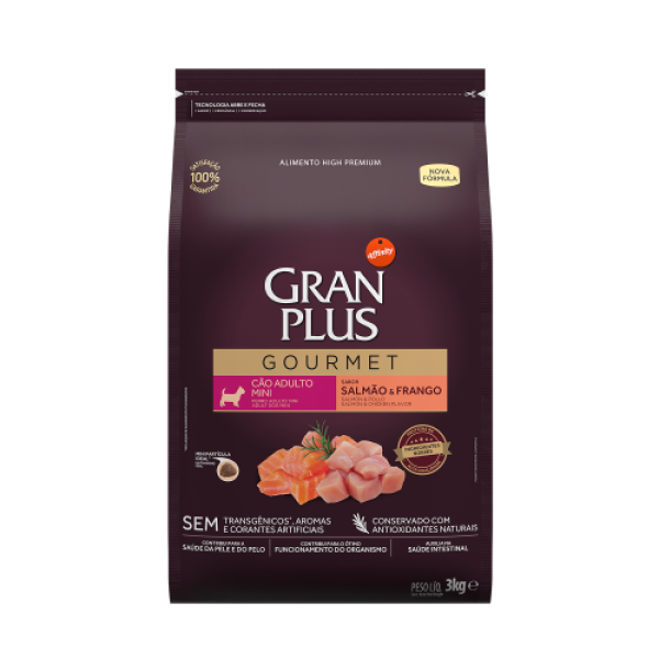 Ração Gran Plus Gourmet Para Cães Adultos de Porte Pequeno Sabor Salmão e Frango 3 KG