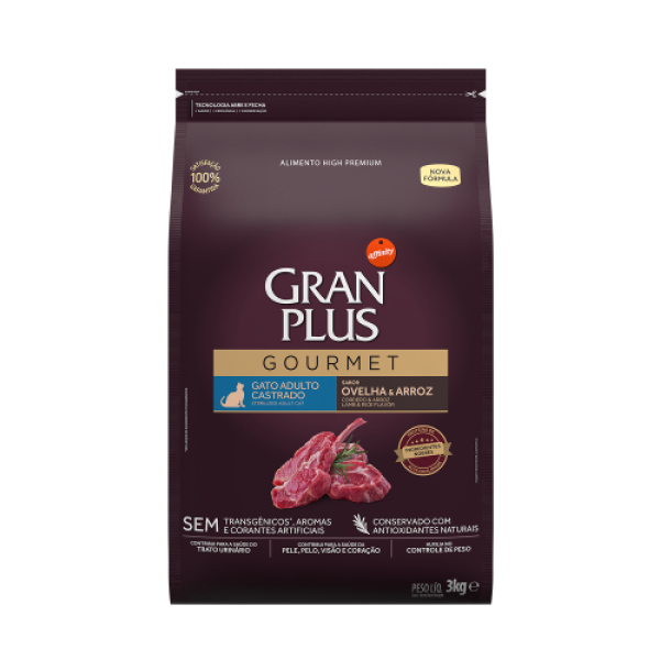 Ração Gran Plus Gourmet Para Gatos Adultos Castrados Sabor Ovelha 3 KG