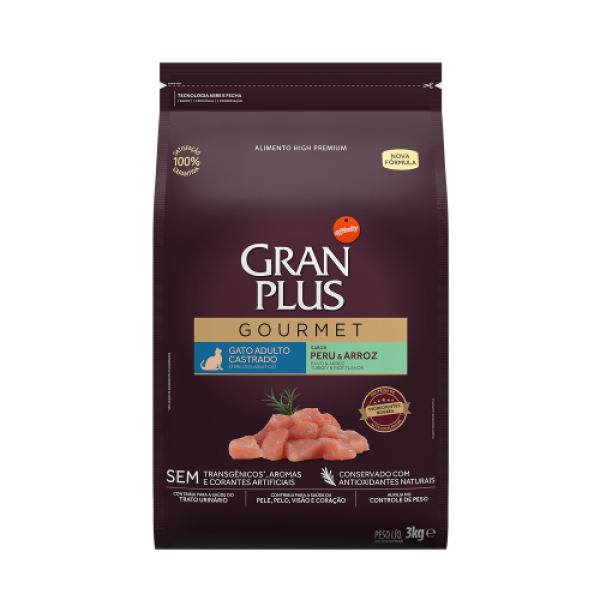 Ração Gran Plus Gourmet Para Gatos Adultos Castrados Sabor Peru 3 KG