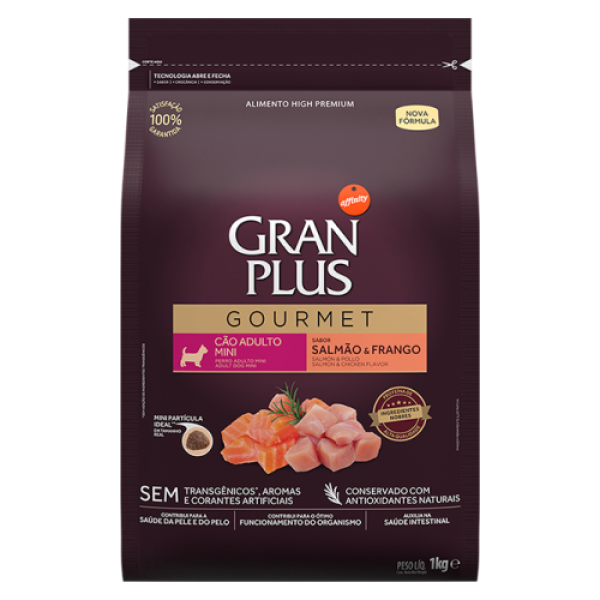 Ração Gran Plus Gourmet Para Cães Adultos de Porte Pequeno Sabor Salmão 1 KG