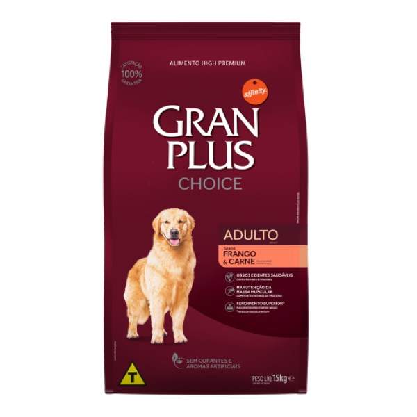 Ração Gran Plus Choice Para Cães Adultos de Porte Médio e Grande Sabor Frango e Carne 15 KG