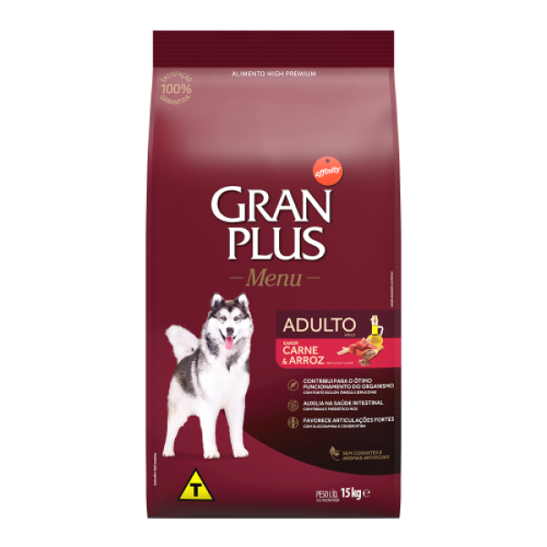 Ração Gran Plus Para Cães Adultos de Porte Médio e Grande Sabor Carne 15 KG