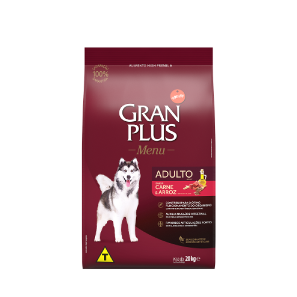 Ração Gran Plus Para Cães Adultos de Porte Médio e Grande Sabor Carne 20 KG