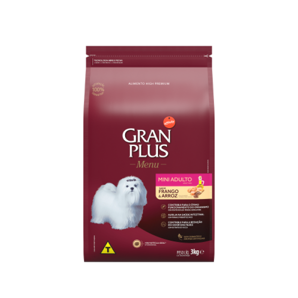 Ração Gran Plus Para Cães Adultos de Porte Pequeno Sabor Frango 3 KG