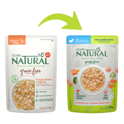 Carne Mecanicamente Separada de Frango, Farinha de Peixe Salmão, Fígado de Frango, Fígado Suíno, Pele de Aves, Óleo de Linhaça, Óleo de Peixe Refinado, Farinha de Vísceras de Aves, Farinha de Trigo, Fibra de Cana-de-Açúcar, Água, Cloreto de Sódio (Sal Comum), Carbonato de Cálcio, Cloreto de Potássio, Goma Xantana, Corante Natural Caramelo, Aditivo Prebiótico (Parede Celular de Levedura Fonte de Mananoligossacarídeos), Vitaminas (A, D3, E, K3, B1, B2, B6, B12, Pantotenato de Cálcio, Ácido Fólico, Ácido Nicotínico, Biotina, Cloreto de Colina), Minerais (Sulfato de Zinco, Sulfato de Ferro, Sulfato de Manganês, Iodato de Cálcio, Proteinato de Cobre, Levedura Enriquecida com Selênio).