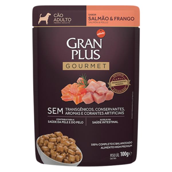 Ração Úmida Sachê Gran Plus Gourmet Para Cães Adultos Sabor Salmão 100 G