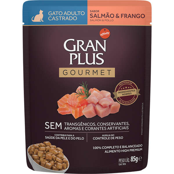 Ração Úmida Sachê Gran Plus Para Gatos Adultos Sabor Salmão e Frango 85 G