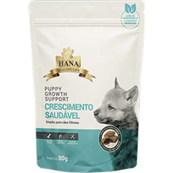Os Snacks Hana Nuggets Crescimento Saudável para Cães Filhotes recheados, foram formulados para auxiliar com o crescimento dos cães filhotes, graças à eficaz combinação de nucleotídeos, que ajudam na resposta imunológica e estimulam o mecanismo de defesa dos filhotes. Contém também o Ômega 3, que contribui para o desenvolvimento cerebral e cognitivo e Inulina com efeito prebiótico, que favorece a flora intestinal dos pets..