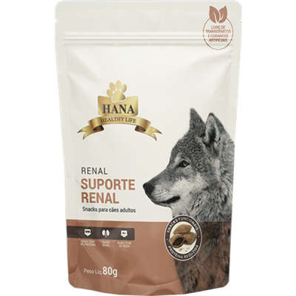 Os Snacks Hana Nuggets Suporte Renal para Cães Adultos foi formulado para seu pet que sofre de insuficiência renal, enfermidade renal crônica e hipertensão. Formulado com proteínas nobres em um nível moderado, diminuindo o consumo de aminoácidos não essenciais, além do baixo teor de fósforo e sódio que também são os diferencias na composição do produto.