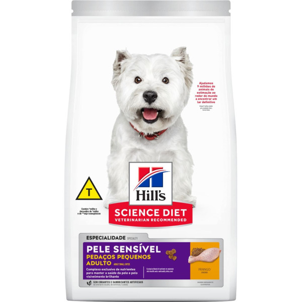 Hill's Science Diet Adulto Pele Sensível Pedaços Pequenos é um alimento feito com ingredientes selecionados para atender as necessidades especiais de cães adultos saudáveis acima de 1 ano de idade, com pele sensível que preferem pedaços pequenos.