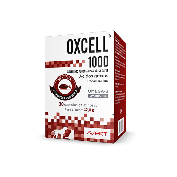 OXCELL® 1000 é um suplemento alimentar composto por ácidos graxos essenciais derivados de peixes marinhos. É indicado para cães e gatos que necessitem do aporte desses nutrientes.