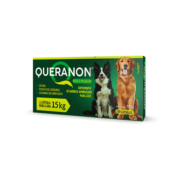 Queranon® é um suplemento vitamínico-aminoácido, indicado para cães que necessitem do aporte desses nutrientes.