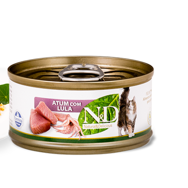 Ração Úmida Lata N&D Prime Para Gatos Sabor Atum Com Lula 80 G