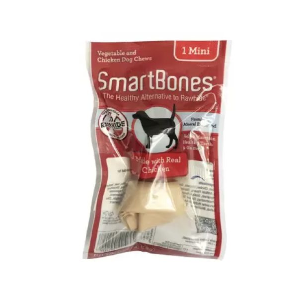 Osso Dingo Smartbones Chicken Mini para Cães Além de serem enriquecidos com vitaminas e minerais, os ossinhos SmartBones possuem um delicioso sabor de frango que seu cão vai adorar. Seus ingredientes, frango e vegetais, fazem com que sejam fáceis de digerir e, graças aos benefícios trazidos pela sua mastigação, ajudam a manter os dentes e as gengivas saudáveis.
