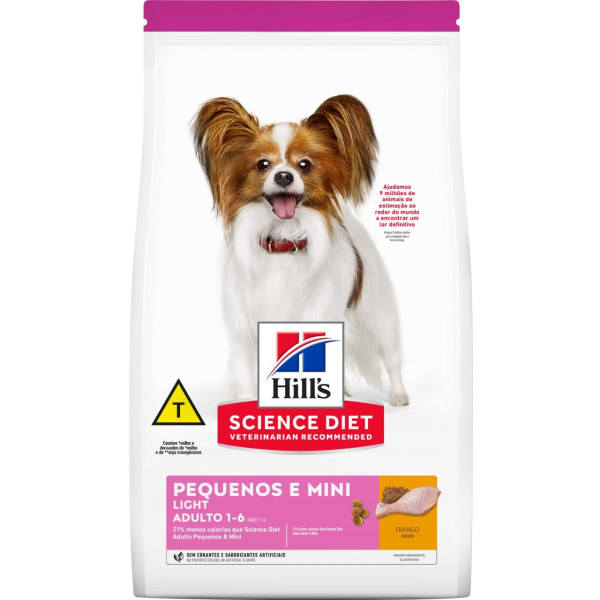 Hill's Science Diet Canino Adulto Light Pequenos e Mini é um alimento feito com ingredientes selecionados para atender as necessidades especiais de cães adultos saudáveis acima de 1 ano de idade que necessitam de dietas com restrição calórica.
