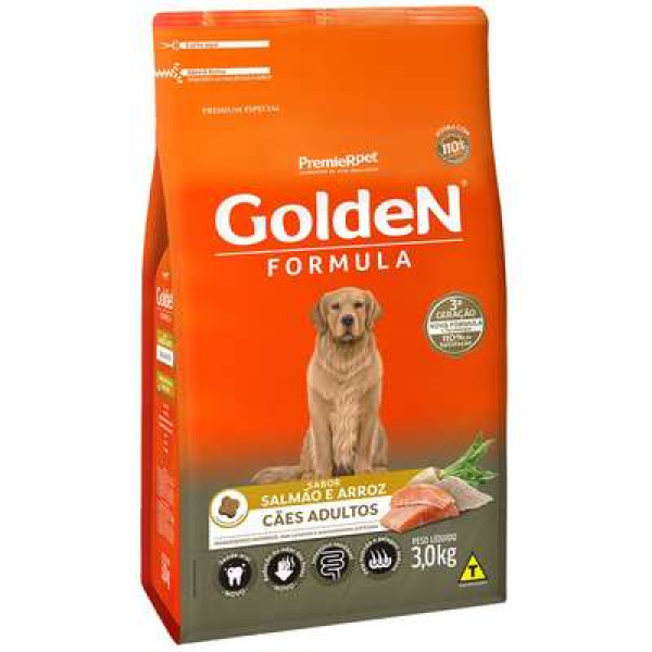 Ração Golden Para Cães Adultos Sabor Salmão 3 KG