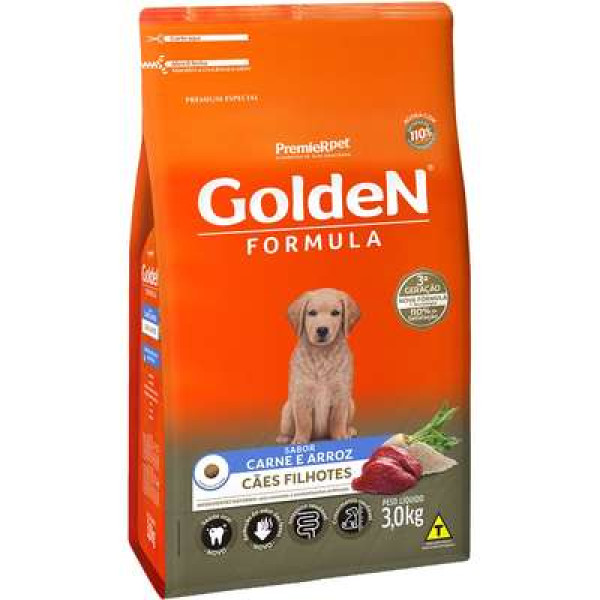 Ração Golden Para Cães Filhotes Sabor Carne 3 KG