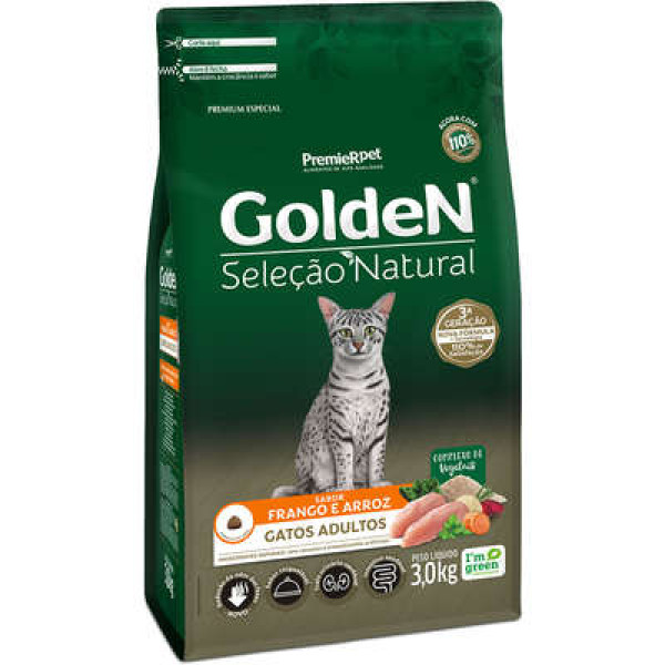 Ração Golden Seleção Natural Para Gatos Adultos Sabor Frango 3 KG