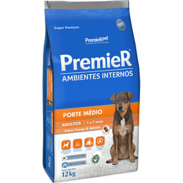 Ração Premier Ambientes Internos Para Cães Adultos De Porte Médio 12 KG