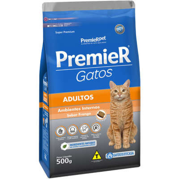 Ração Premier Ambientes Internos Para Gatos Adultos Sabor Frango 500 G