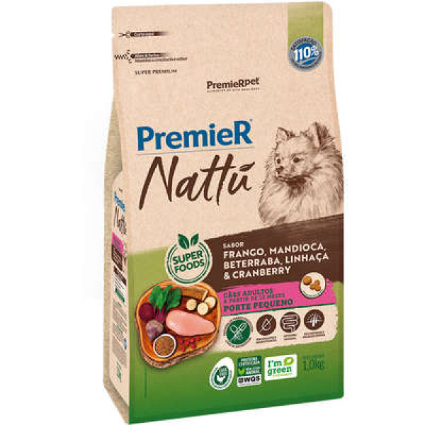 Ração Premier Nattu Para Cães Adultos de Porte Pequeno Sabor Frango e Mandioca 1 KG