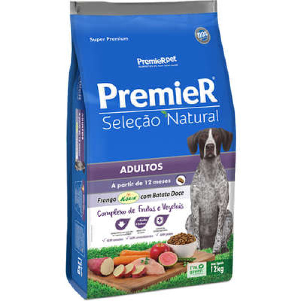 Ração Premier Sel. Natural Para Cães Ad. De Porte Médio/Grande Sabor Frango c/ Batata Doce 12 KG