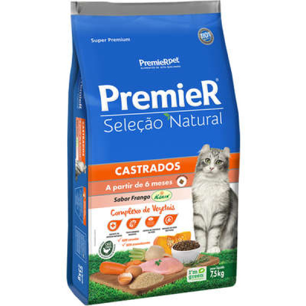Ração Premier Seleção Natural Para Gatos Adultos Castrados Sabor Frango 7,5 KG